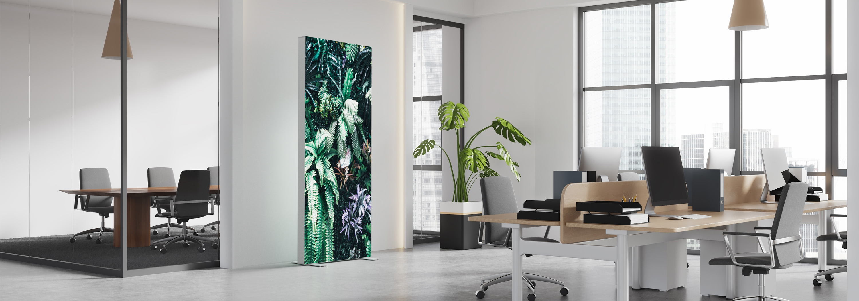 Einsetzbar als Rückwand, Raumteiler, im Showroom, bei Events oder auf der Messe.