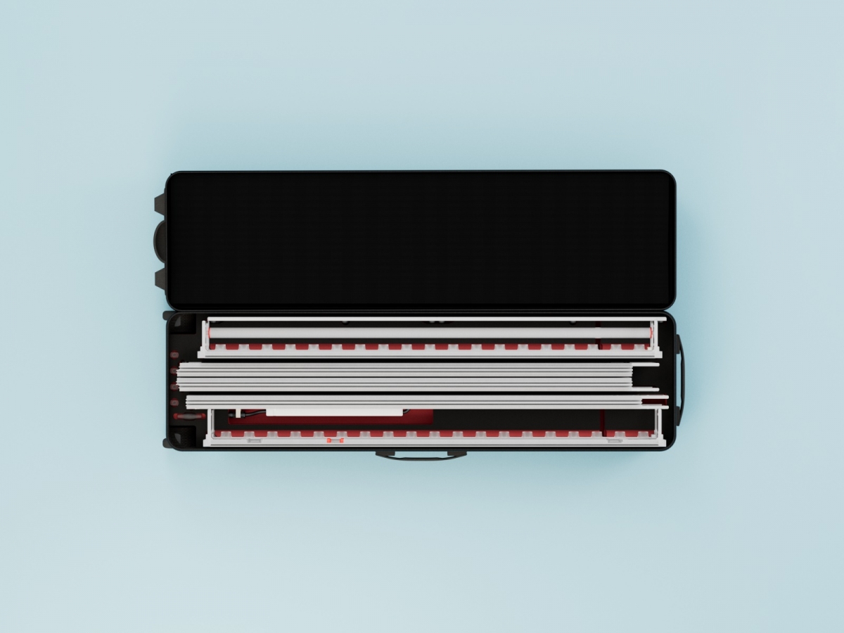 Jedes Teil ist eindeutig nummeriert, sodass der richtige Platz im Hartschalenkoffer leicht gefunden werden kann.