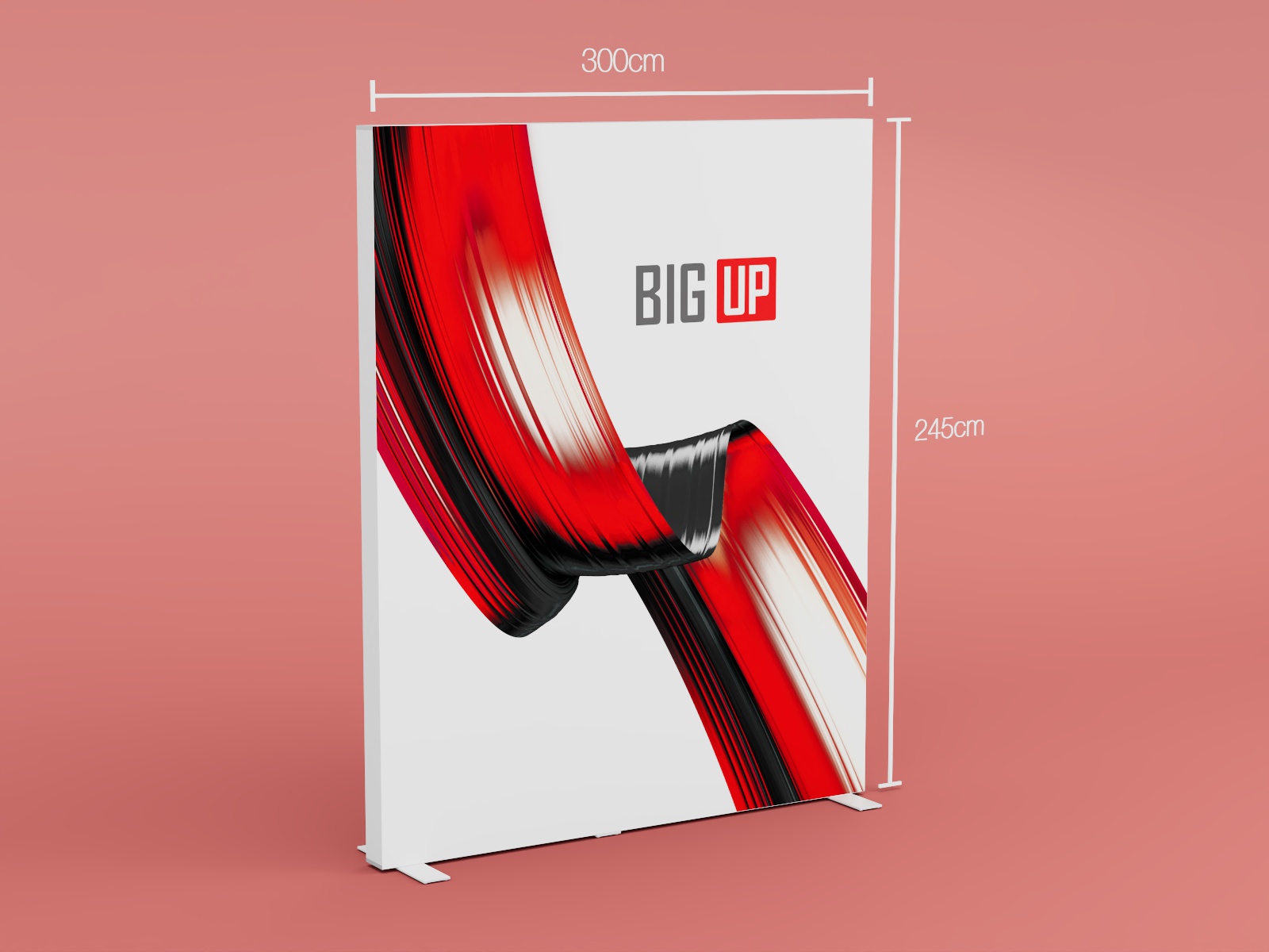 Mit einer maximalen Höhe von 3 Metern und einer Breite von bis zu 10 Metern ist BIG UP™ der größte tragbare Rahmen auf dem Markt. Sein modularer Systemaufbau erlaubt zudem zahlreiche Gestaltungsmöglichkeiten, wodurch BIG UP™ für viele unterschiedliche Anwendungen geeignet ist!
