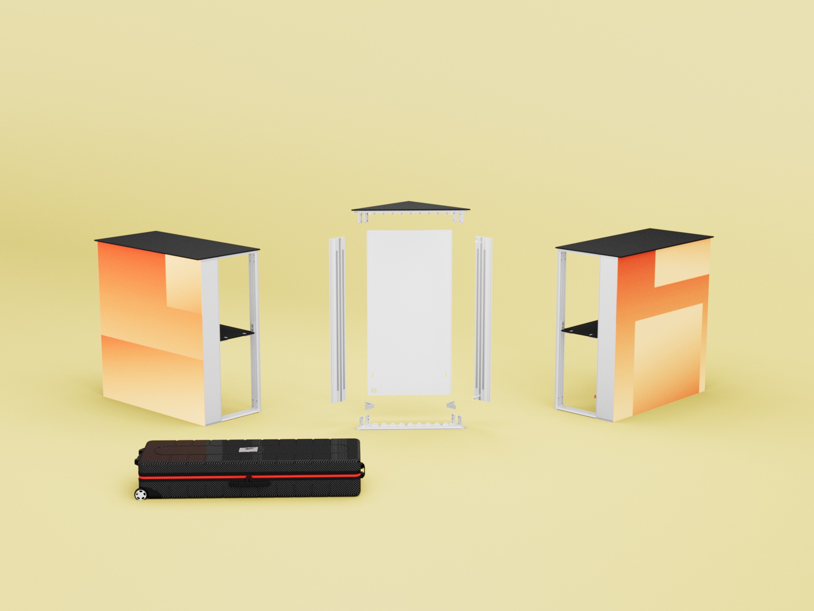 Mit dem Counter One Corner können Sie zwei Counter One bequem miteinander verbinden und eine beleuchtete Ecke schaffen, die Ihren Messestand noch ansprechender gestaltet. Dieses Zubehör erweitert Ihre Gestaltungsmöglichkeiten und sorgt für ein modernes, hochwertiges Design.