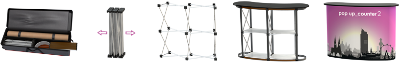 Der Pop Up Counter 2 wird häufig in Kombination mit einem Hintergrundsystem wie Pop Up – Dragon2, Penguin oder anderen Hintergrundsystemen verwendet. Er wird in Ausstellungsräumen, Geschäften, für Promotionen, Messen, Ausstellungen, usw. eingesetzt.