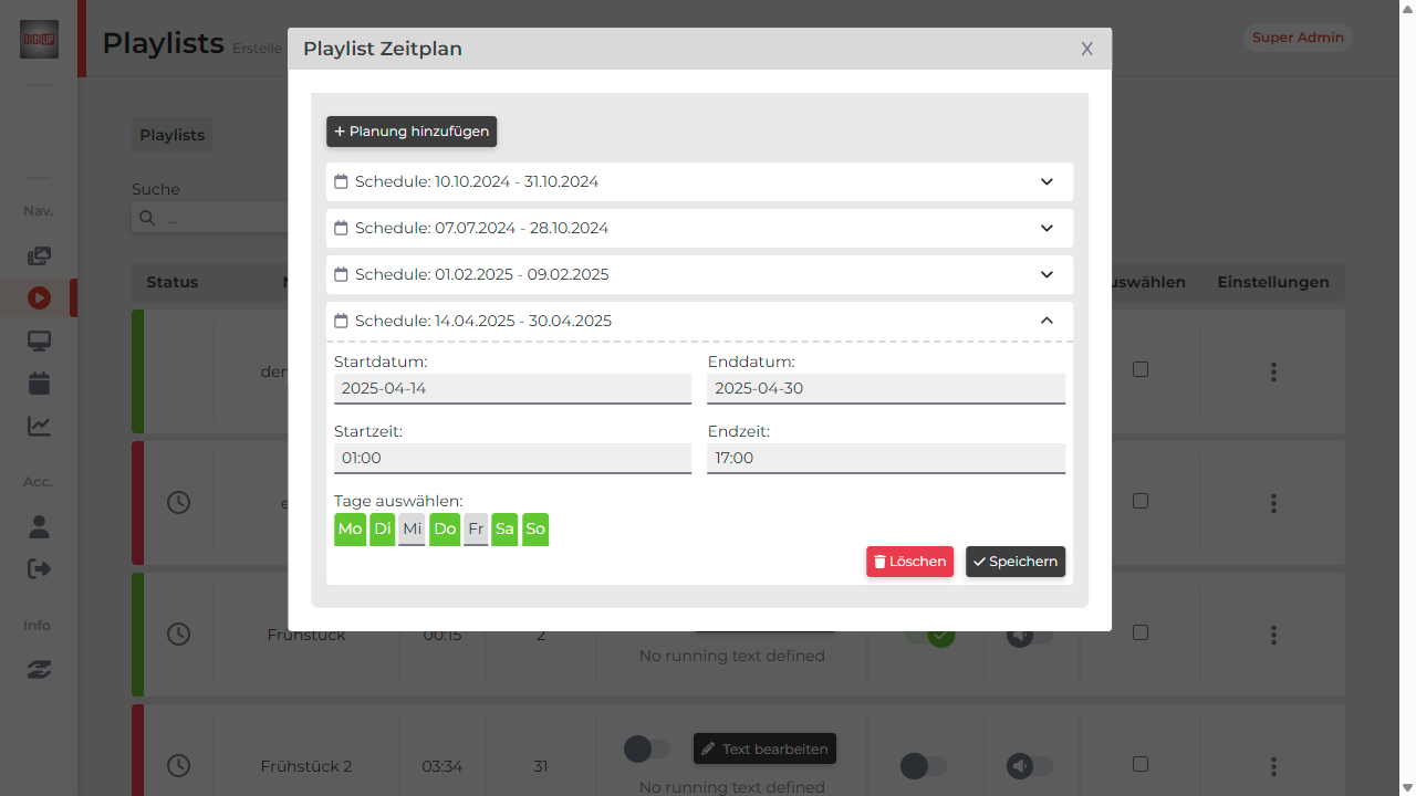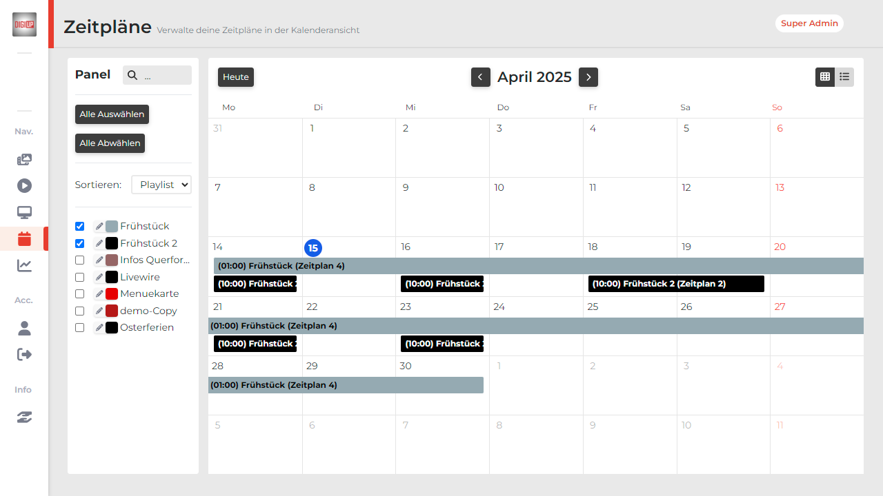 • Vorab-Festlegung von Dauer, Start- und Endzeiten der Inhalte