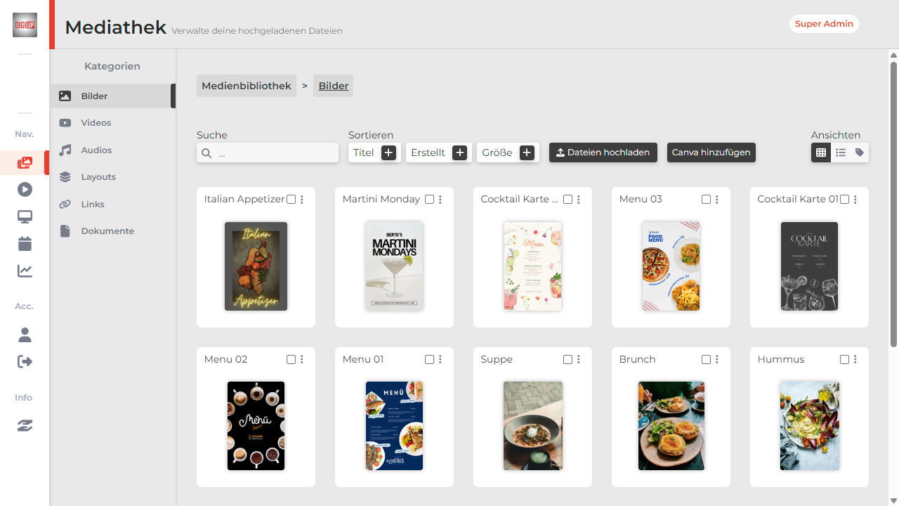 Mit dem DIGIUP Content Management System steuern Sie Ihre Digital Signage Lösungen zentral und intuitiv – von jedem Ort aus. Inhalte lassen sich schnell planen, verwalten und auf beliebig viele Bildschirme übertragen.