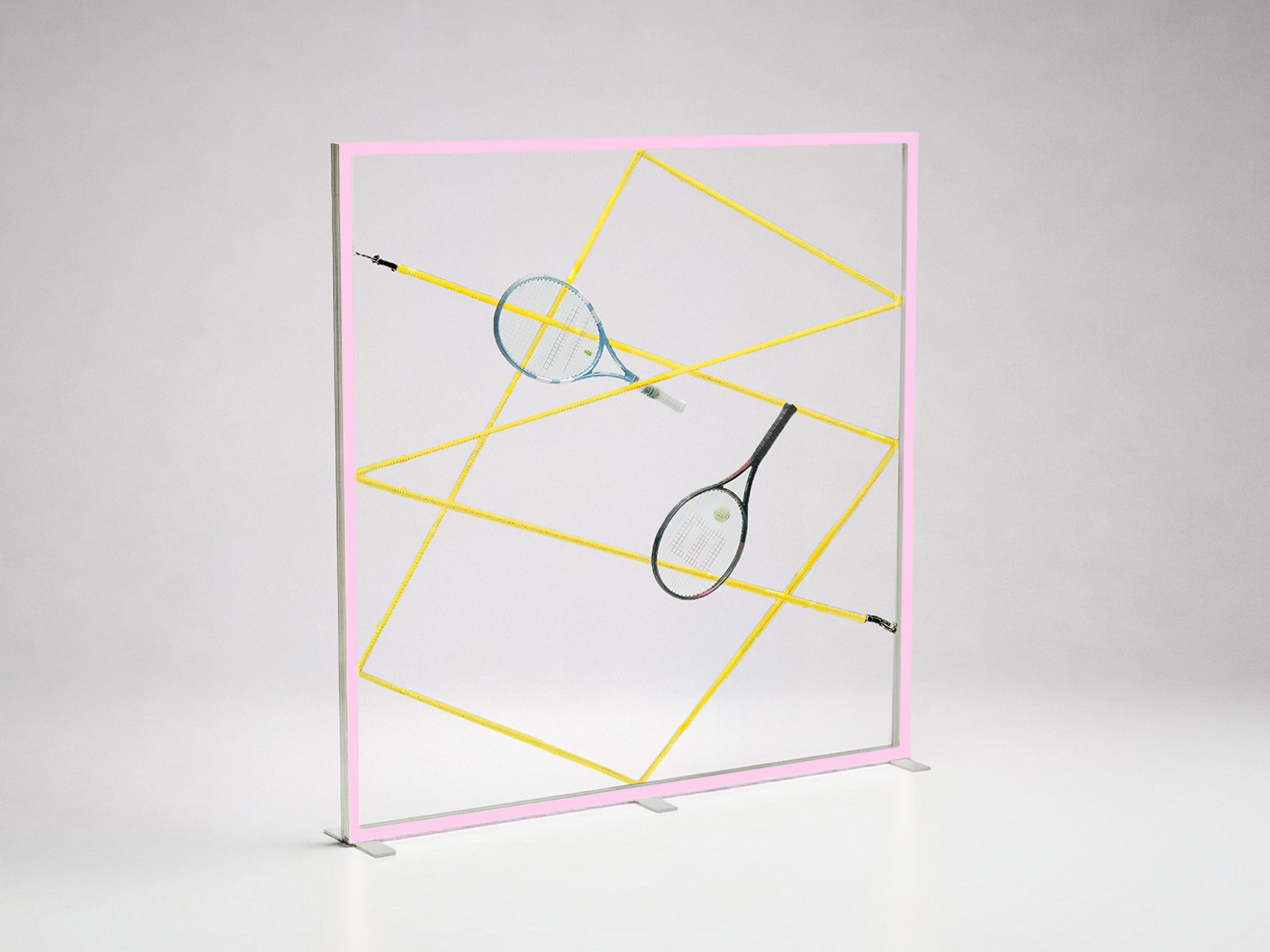 Das Seil wird am Rahmen eingehakt und gespannt, sodass Produkte einfach aufgehängt und präzise positioniert werden können. Erhältlich in neun Farben – passend zur Marke oder als gezielter Akzent im Aufbau. Auch in Kombination mit Stoffgrafiken einsetzbar.