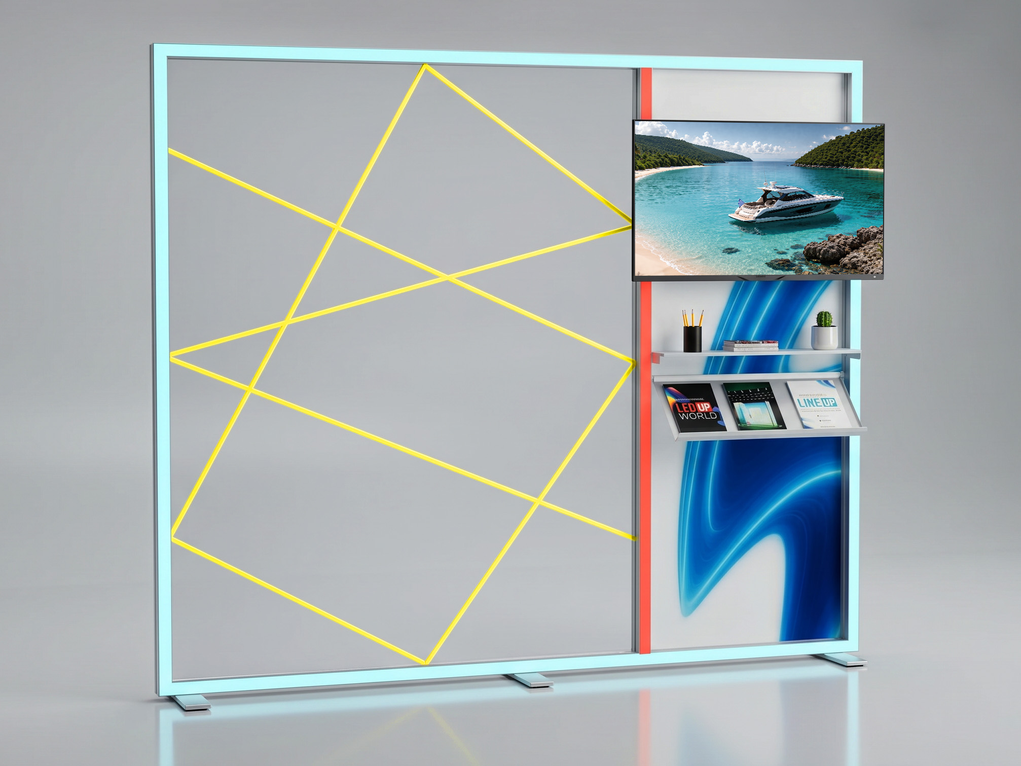 Die LINEUP Support Pole erweitert dein System um zusätzliche Struktur und Stabilität. Sie ermöglicht individuelle Layouts, mehrteilige Displays und neue Aufbauvarianten innerhalb des bestehenden Rahmens.