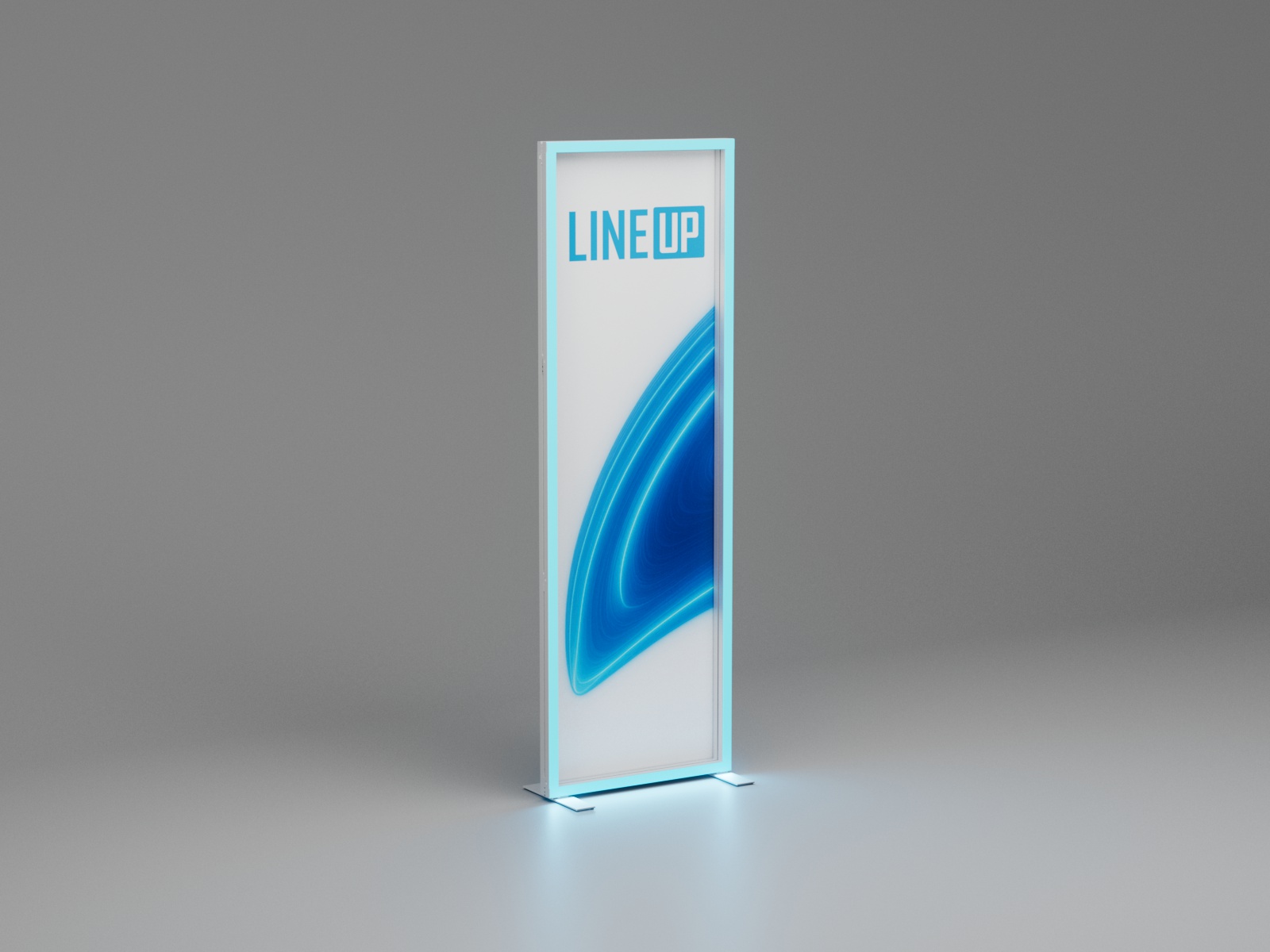 Der LED-Leuchtrahmen LINEUP vereint modernes Design mit fortschrittlicher Technologie und durchdachter Funktionalität. Gefertigt aus silber-eloxierten Aluminiumprofilen und ausgestattet mit RGB-LED-Lichtleisten, die bis zu 16 Millionen Farben darstellen können, eröffnet LINEUP völlig neue Möglichkeiten der Markeninszenierung. Verpackt wird das System in einem robusten, rollbaren ABS-Hartschalenkoffer – ideal für den sicheren und mobilen Einsatz.