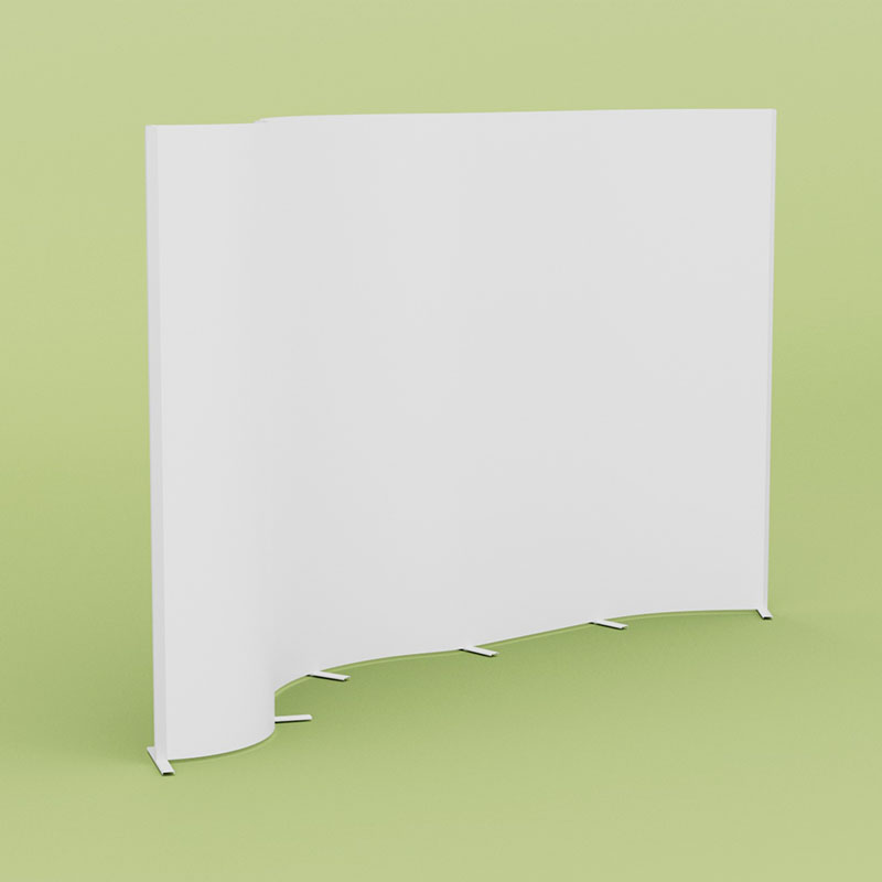 Das ISOframe Wave-System ist ein flexibel verformbares Ausstellungssystem mit Magnetpaneelausstattung.
