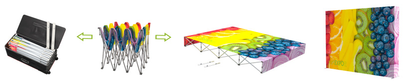 Das Soft Expo2 wird oft als "das 10-Sekunden-System" bezeichnet. Um das Soft Expo aufzustellen, entfalten Sie einfach das System, verriegeln die Verbinder – fertig.