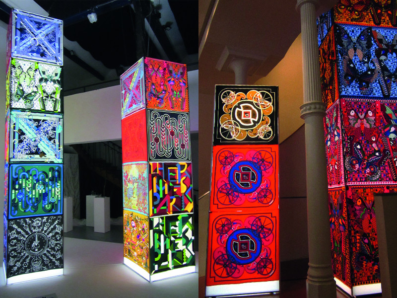 Die Multi Tower Profile aus silber eloxiertem Aluminium sind leicht mit LED-Lampen hinterleuchtet und einfach zu transportieren.