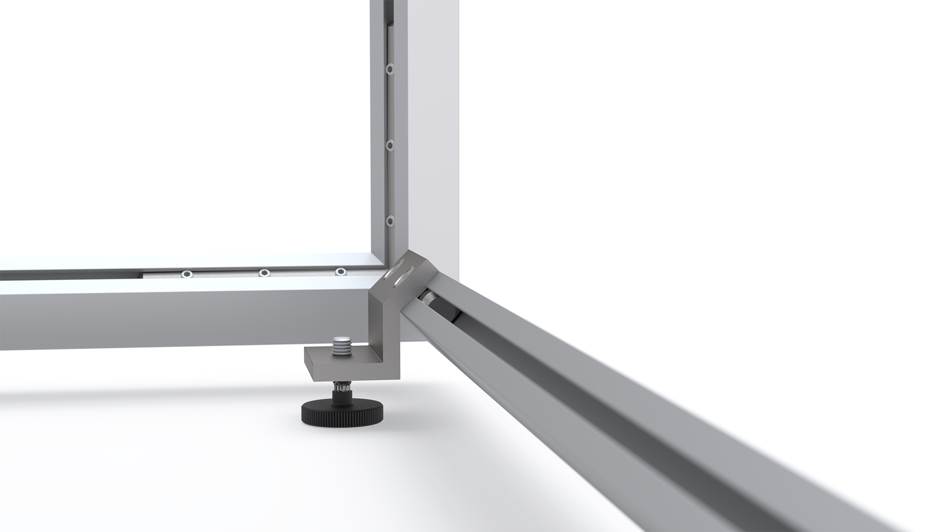 Die Verbindungen an den geraden Profilen sind mit einem Aluminiumkreuz verstärkt, das auch als Lampenhalterung für LED-Lampen angepasst werden kann. Diese Technik ermöglicht eine gleichmäßige Ausleuchtung ohne Schattenbildung.