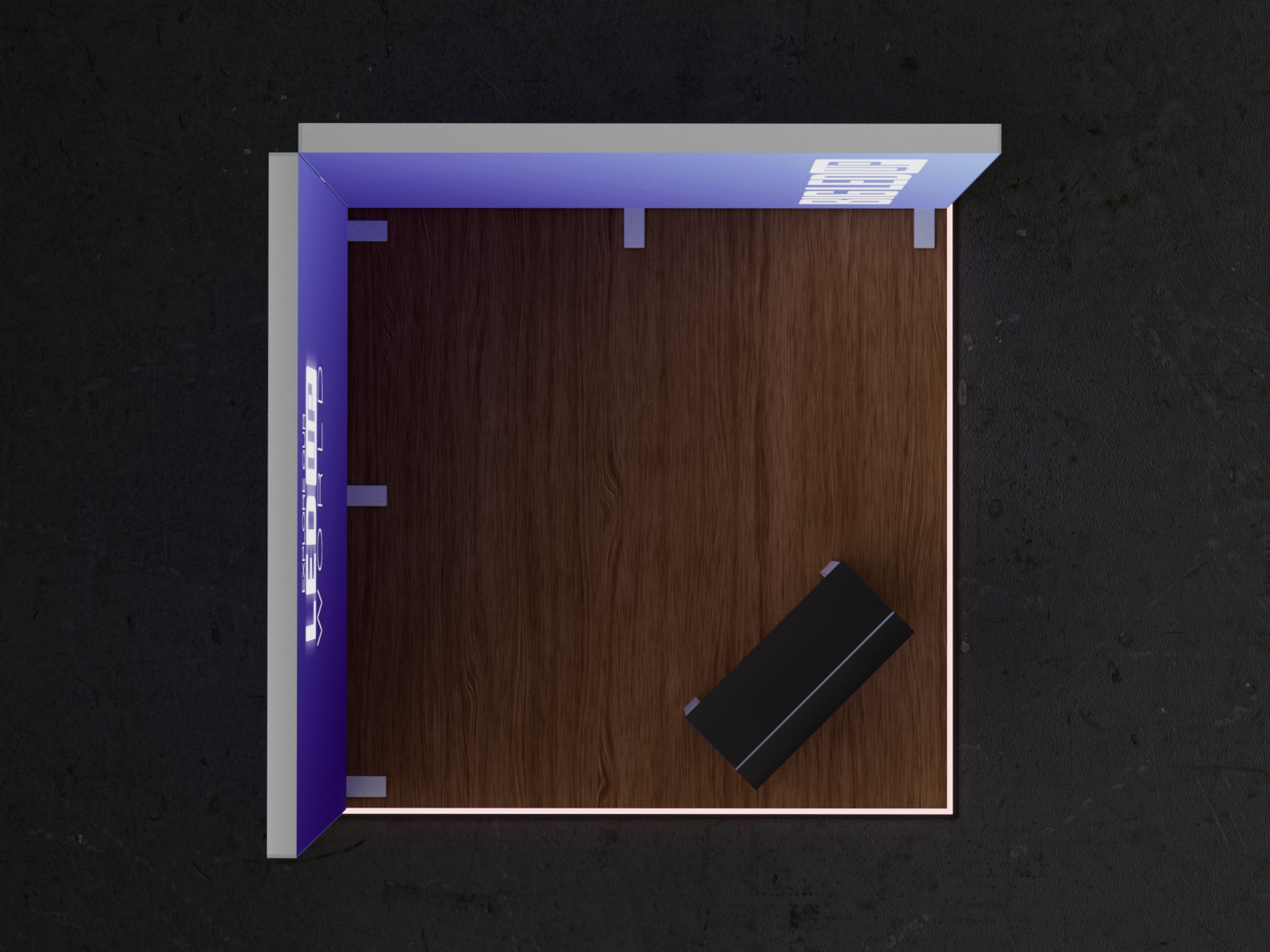 Dieses Set ist mit einer Grundfläche von 3x3 m und einer Höhe von 248 cm, sowie einem Counter MAX, eine kompakte Lösung für eine wirkungsvolle Präsentation.