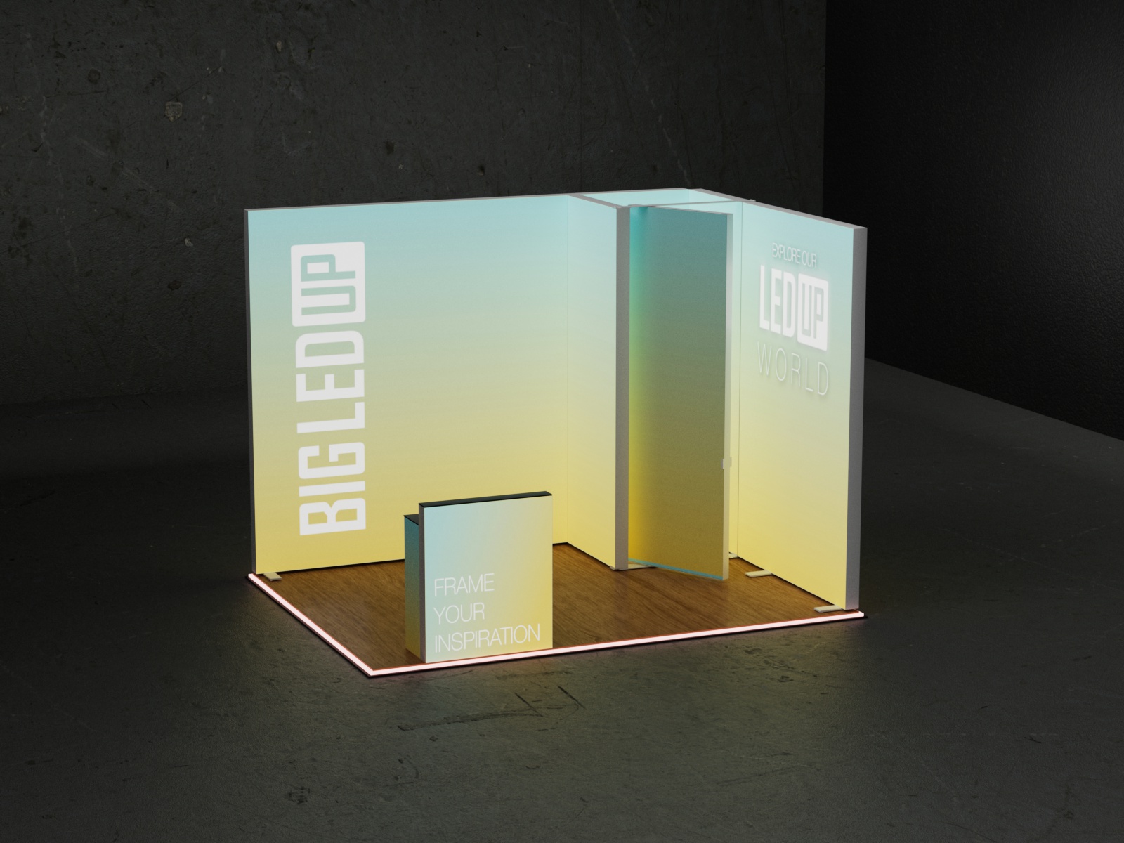 Das BIG LEDUP 4x3 Set ist für diejenigen gedacht, die einen beeindruckenden Messestand benötigen, ohne auf Portabilität zu verzichten. Dieses Setup bietet einen beeindruckenden 4x3 Meter Stand, der sich ideal für mittelgroße Ausstellungsräume eignet. Das Set kombiniert visuelle Wirkung mit einfacher Transportfähigkeit, verpackt in praktischen ABS-Koffern. Passen Sie das Layout an, um perfekt auf Ihre Veranstaltung oder Markenbedürfnisse zugeschnitten zu sein.