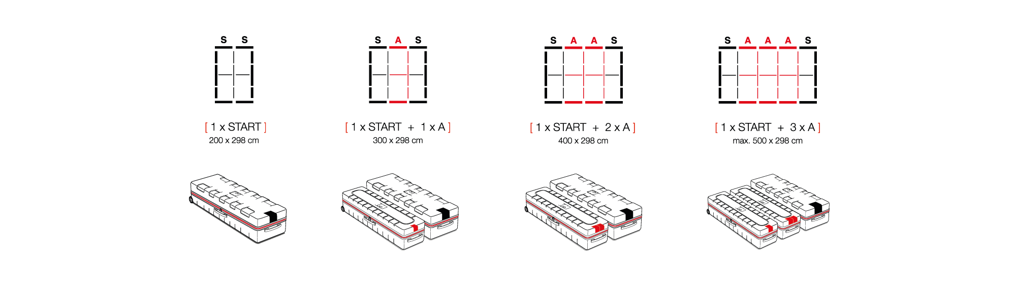 Like the classic BIG LEDUP, BIG LEDUP pro is based on a modular system design. Starter modules and extension modules can still be combined tool-free and adapted to individual spatial and presentation requirements — now with even greater stability and convenience.