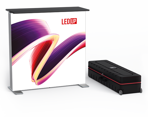 Multi frame – LEDUP counter is a mobile counter system with double backlit image areas. High-end aluminum components in combination with perfect LED-technique guarantees the absolute even lighting and brightness without any shadows. It is also very easy to transport thanks to the durable ABS transport case.