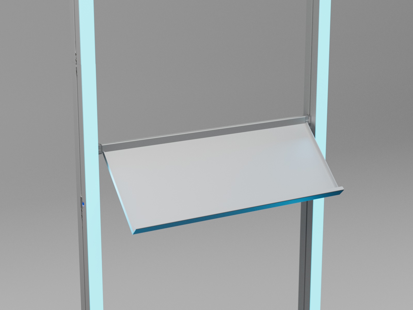 The LINEUP Angled Shelf is a sleek and functional accessory for the LINEUP system — designed to present products, flyers, and print materials in a clean, organized, and highly visible way. It seamlessly integrates into any LINEUP setup, offering an elegant solution for information and literature display.